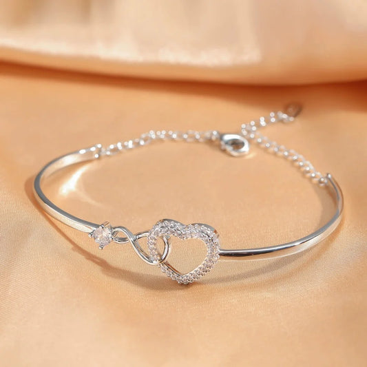 Wedding Tennis Bracelet For Women Dainty Dazzling Shiny Party Luxury Crystal Heart Shape Chain On Hand Fashion Jewelry Gifts