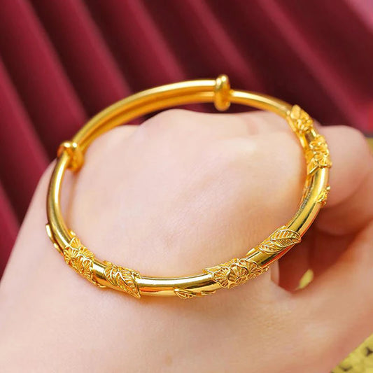 1 piece Full-blown Flowers Bracelet Bangle For Women Luxury Adjustable Solid Bracelet Party Wedding Jewelry