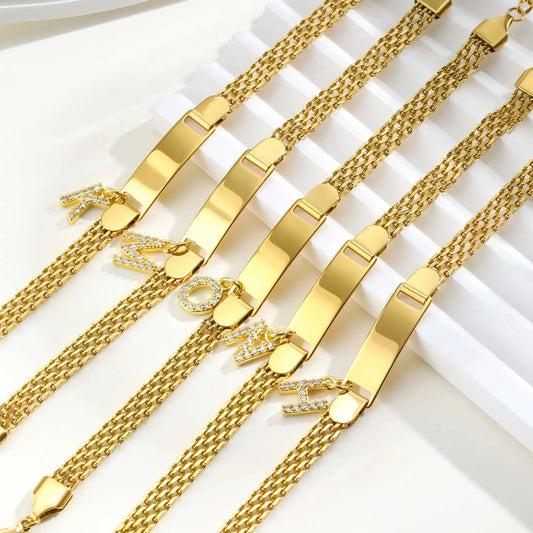 Personalized Engrave ID Name Custom Bracelet for Women Girl, Initial A-Z Letter Alphabet Pendant Stainless Steel Jewelry Gift