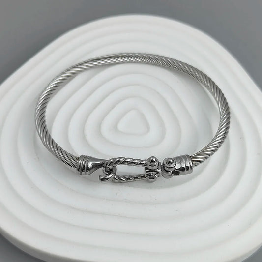 New steel wire button pattern horseshoe gold-plated stainless steel bracelet 18K, high quality waterproof couple bracelet, wife