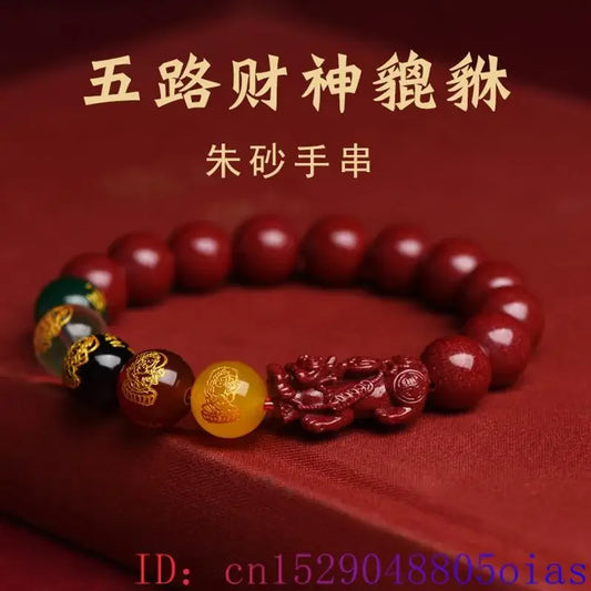 Red Real Cinnabar Pixiu Bracelet Vintage Designer Beads Bangle Gifts for Women Men Amulet Natural Jewelry Charm Carved Gift