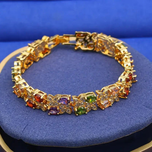 Elegant Tennis Bracelet with Multicolor Synthetic Zirconia - Vintage Luxury Style, 18K Golden Plated, Ideal for Daily Wear & Gif
