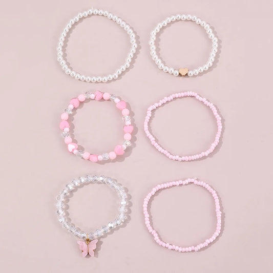 European and American Bracelet Simple Design Sweet Cute Pearl Love Beaded Butterfly Pendant Bracelet 6 Pieces suit