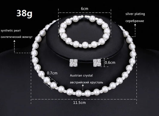 Wedding Bridal Jewelry Set String of Pearls Prom Silver Color Crystal Bracelet Necklace Earrings for Women jewellery sets