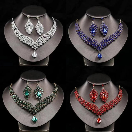 European-Style Bridal Jewelry Set Baroque Crystal Pendant Grand Necklace and Earrings Set Banquet Fashion Jewelry for Women