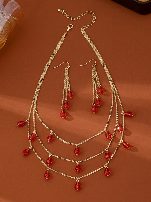 A Set of 3 Pieces of Trendy, Fashionable, Versatile Women's Earrings and Necklace Set