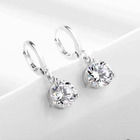 Elegant Bridal Wedding Jewelry Sets Female Round Clear Crystal Zirconia Pendant Necklace Earrings Party Jewellery for Women