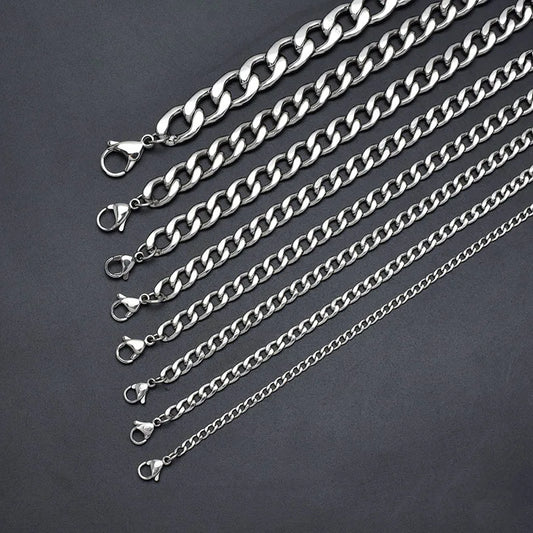 3/5/7/9mm Chunky Cuban Chain Necklaces for Men Boys,Waterproof Stainless Steel Silver Color Chain,Hip Hop Classic Jewelry Gift