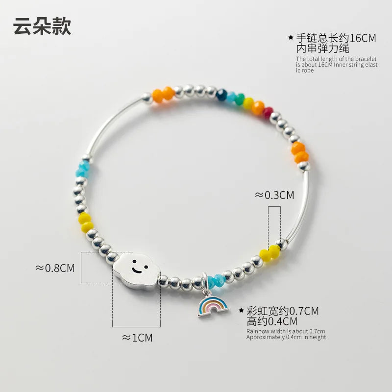 925 Sterling Silver Bracelet Wholesale Colored Hand Beads Smiling Face Rainbow Cloud Love Little Bear Beads Handicraft Gift