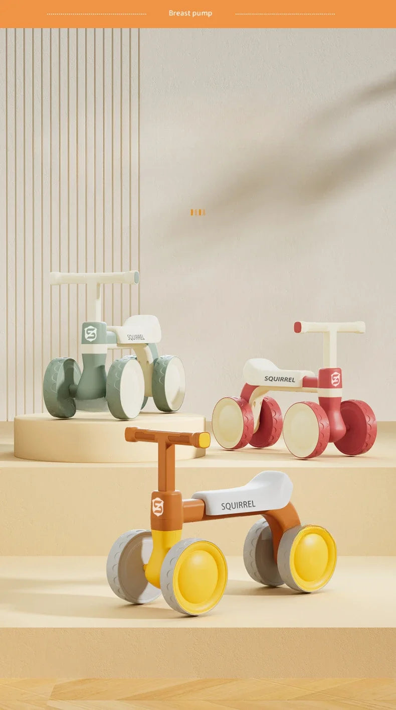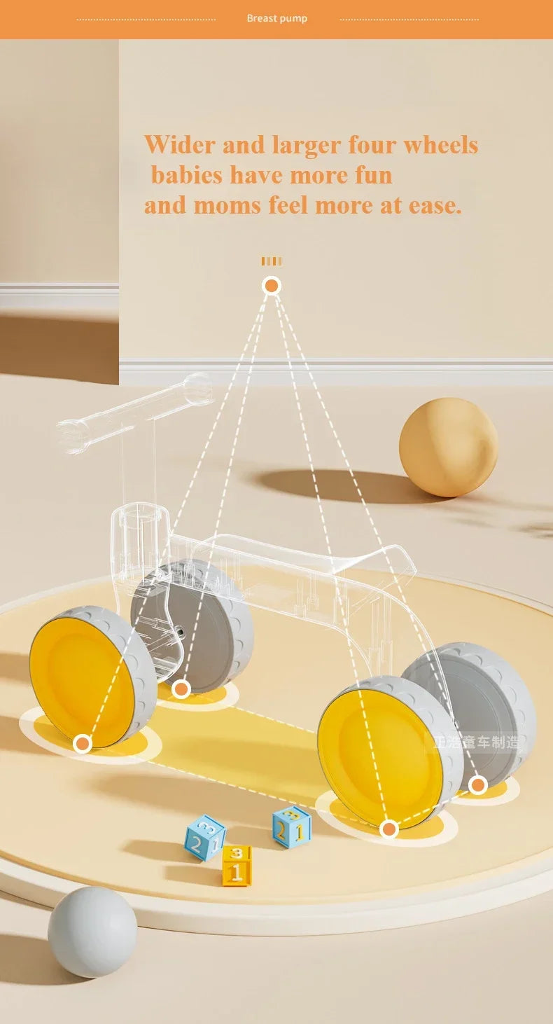 Baby Balance Bike 4-Wheel Walker with No Pedal First Toddler Outdoor Ride-On Toy Kids Birthday Gift for 1-3 Year Olds