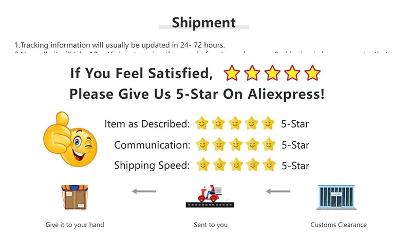 9.Please give 5 stars feedback if you satisfy our products, it is very important for us ,if you have any question , please contact us , we will serve for you on aliexpress .