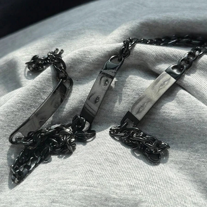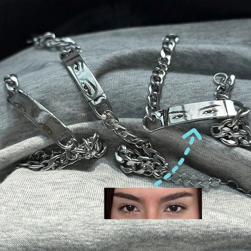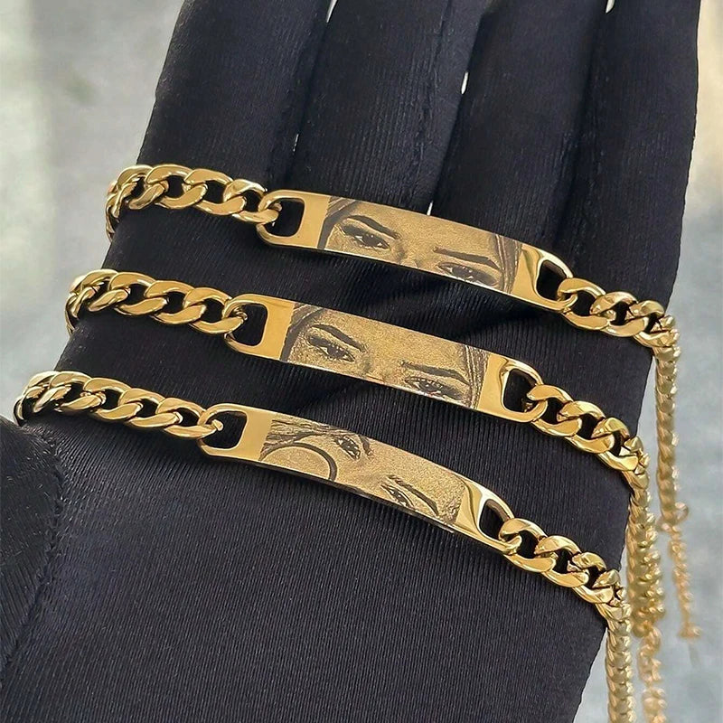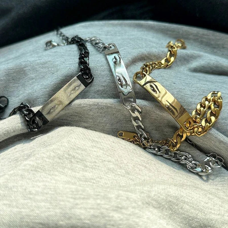 Customized Photo Engraved Couple Bracelet Personalized Laser Engraved Eye Picture On Stainless Steel Chain Jewelry Couples Gifts