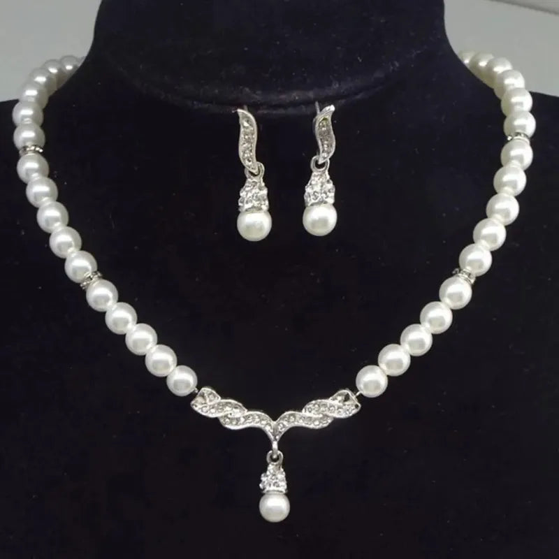 Elegant Necklace Earrings Women Fashion Jewelry Set Faux Pearl Bridal Wedding Alloy Party Studs Necklace Earrings Set