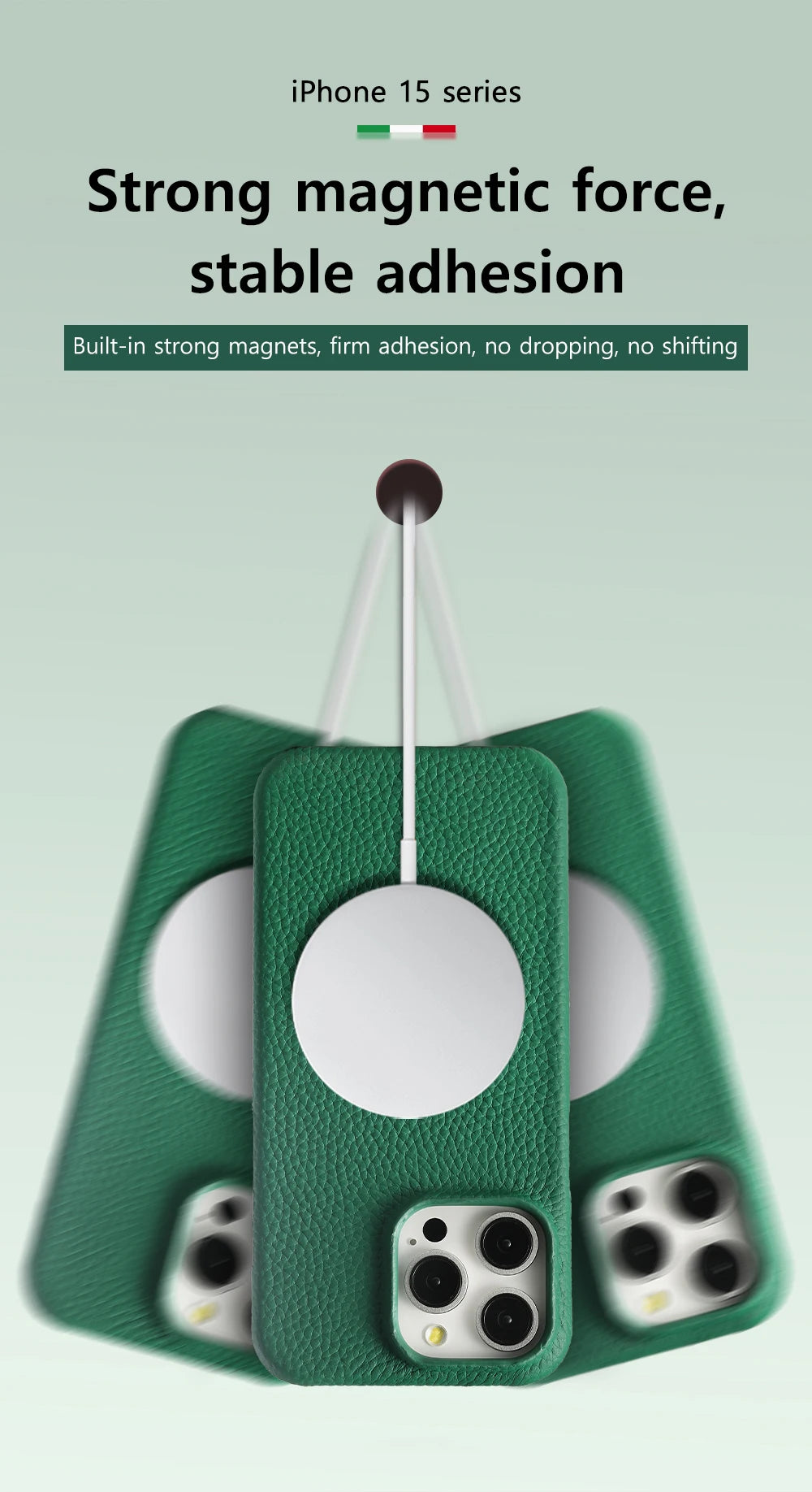 for Magsafe Case for iPhone 17 15 16 Pro Max Air 17Pro Natural Cowhide Lychee Leather Magnetic Protector Luxury Phone Back Cover