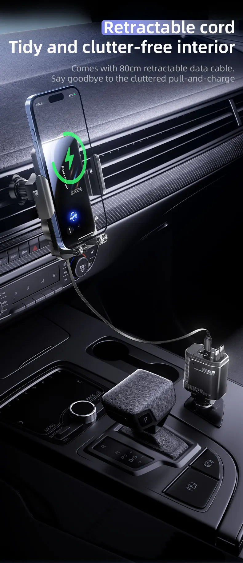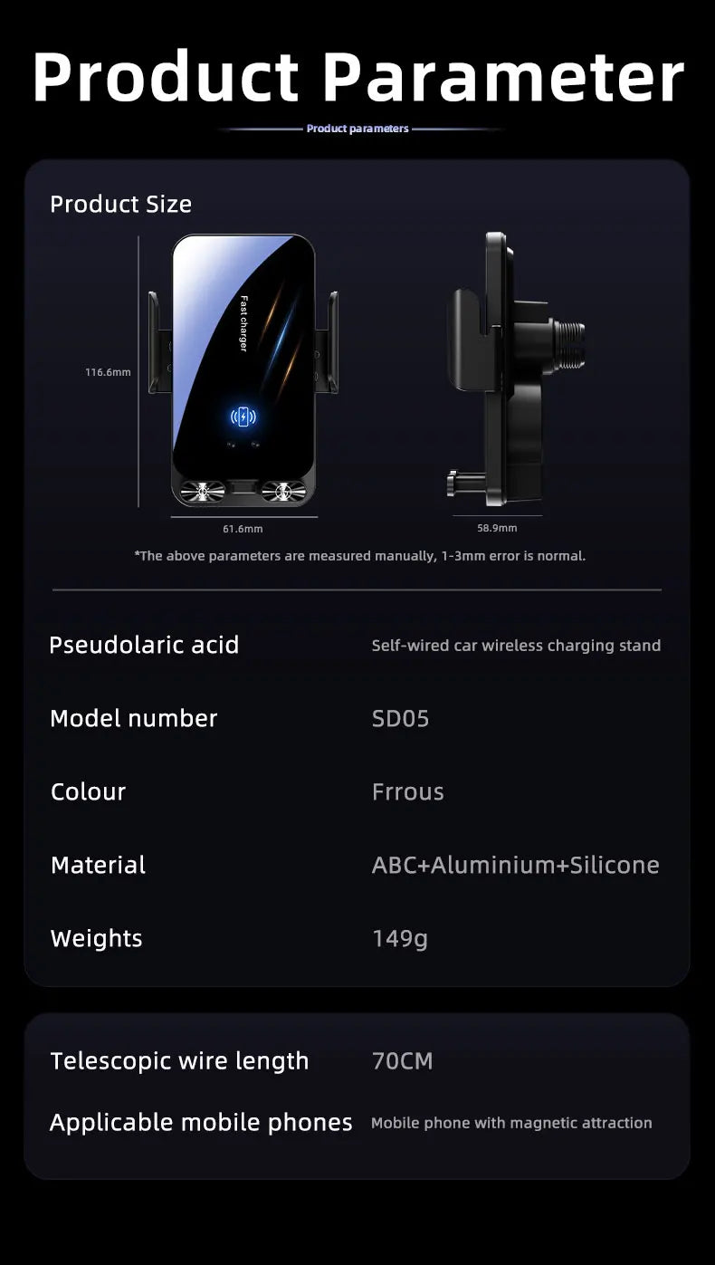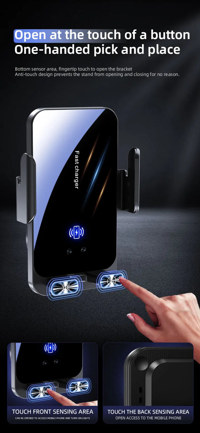 Magnetic Charger 15W Wireless Car Phone Holder with Cable Fast Charging Infrared Sensing Car Mount for iPhone Android
