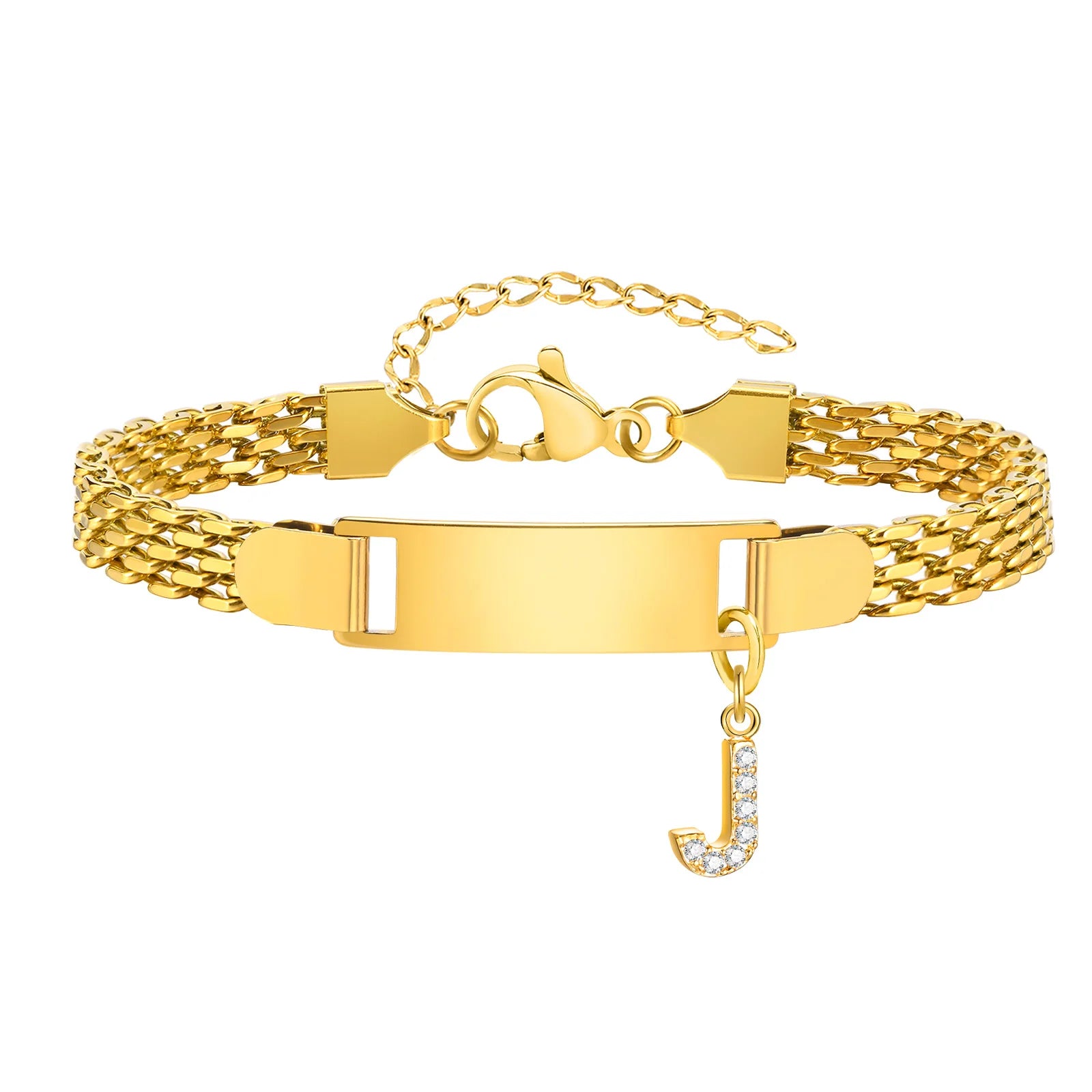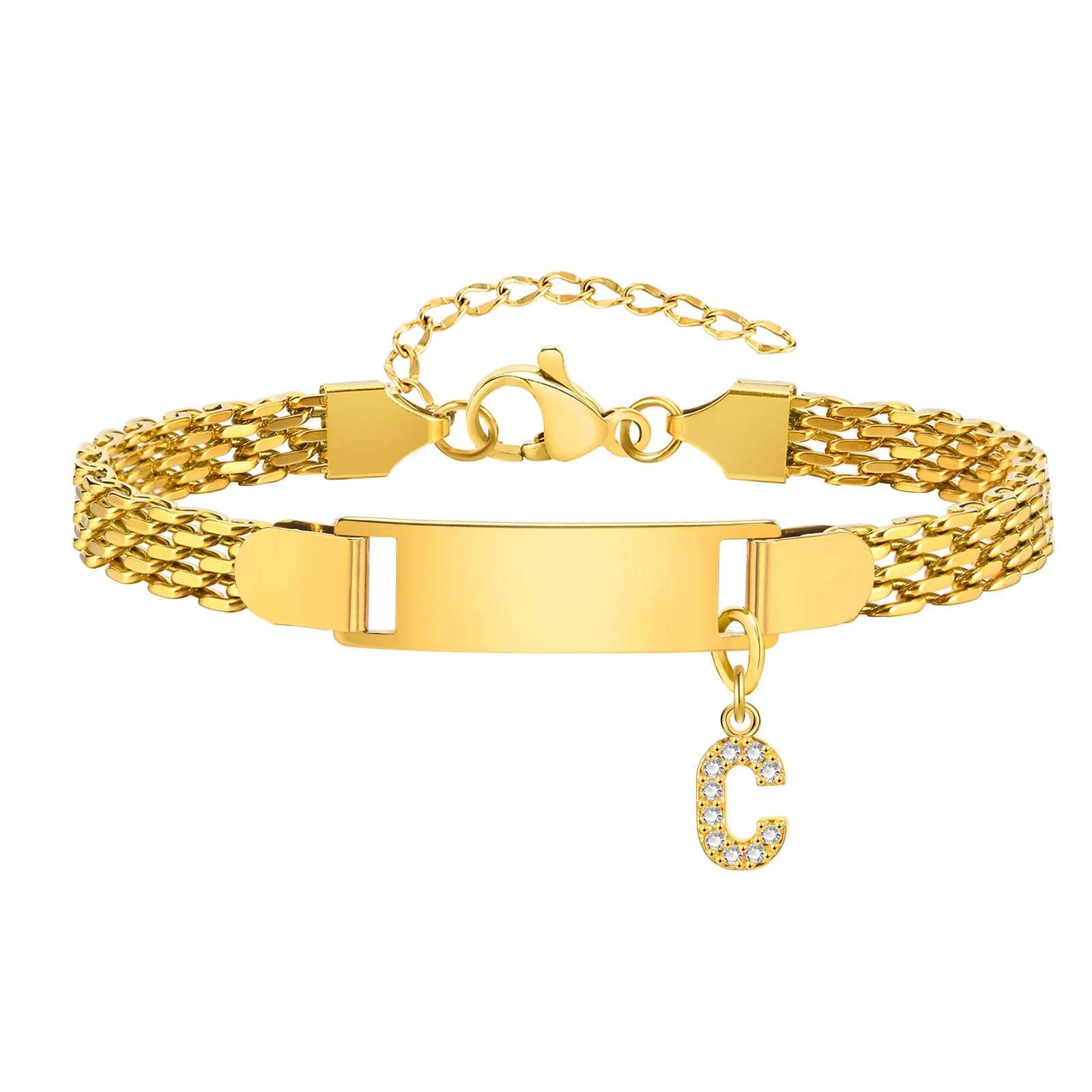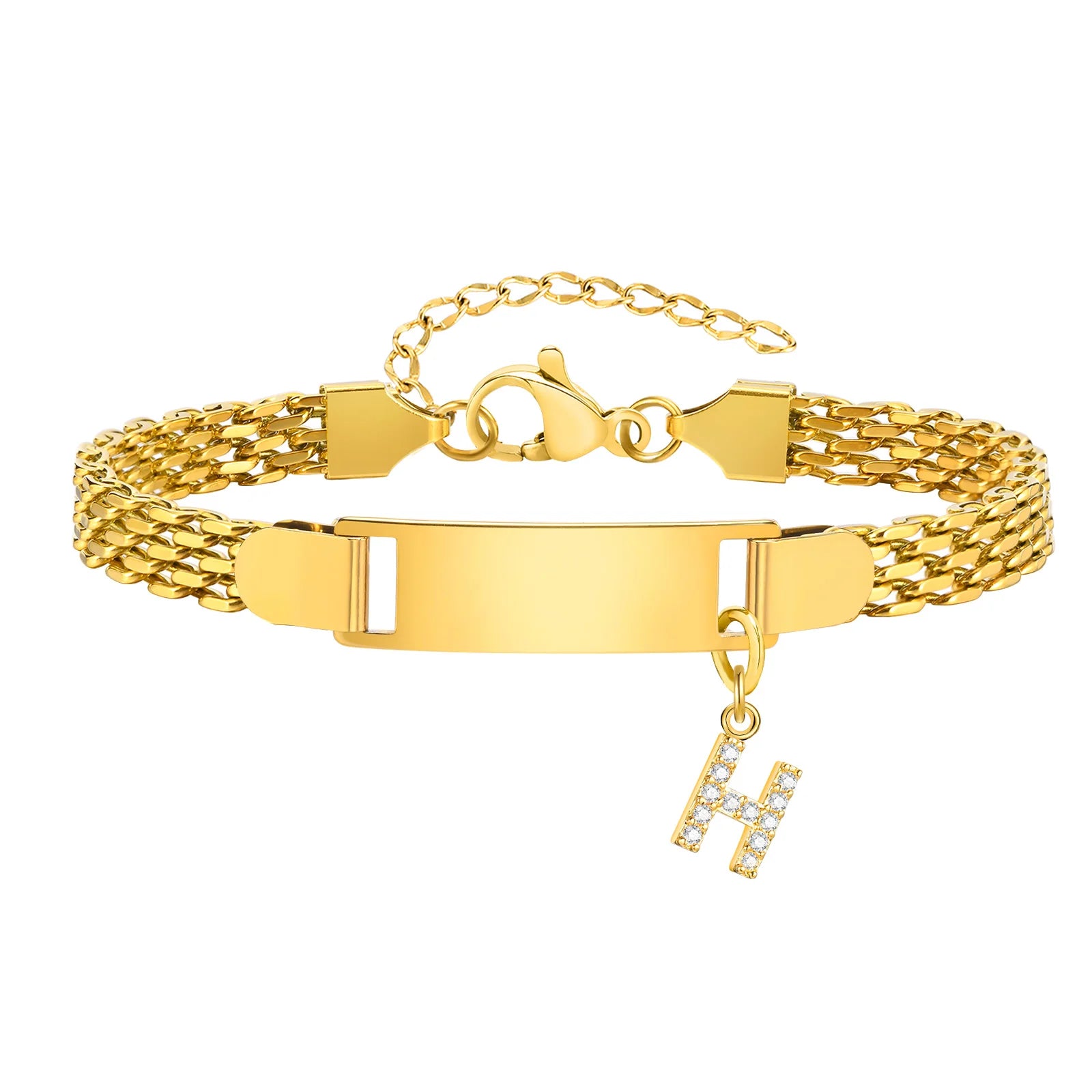 Personalized Engrave ID Name Custom Bracelet for Women Girl, Initial A-Z Letter Alphabet Pendant Stainless Steel Jewelry Gift