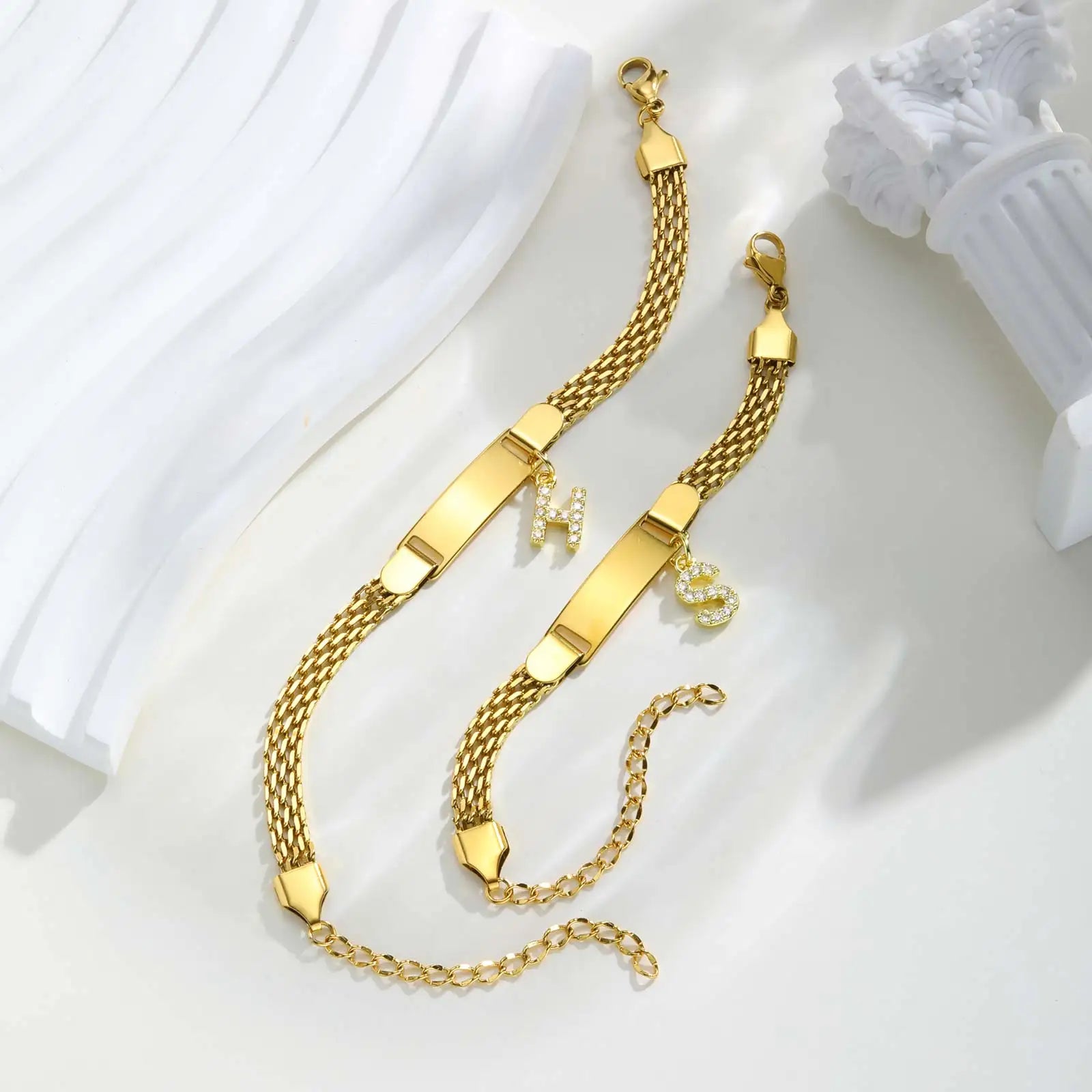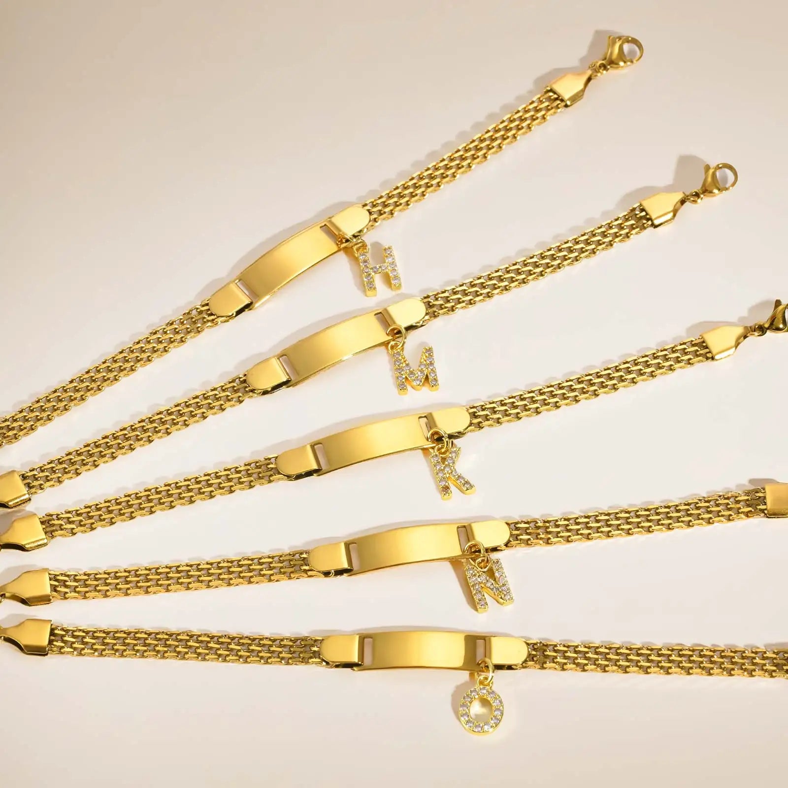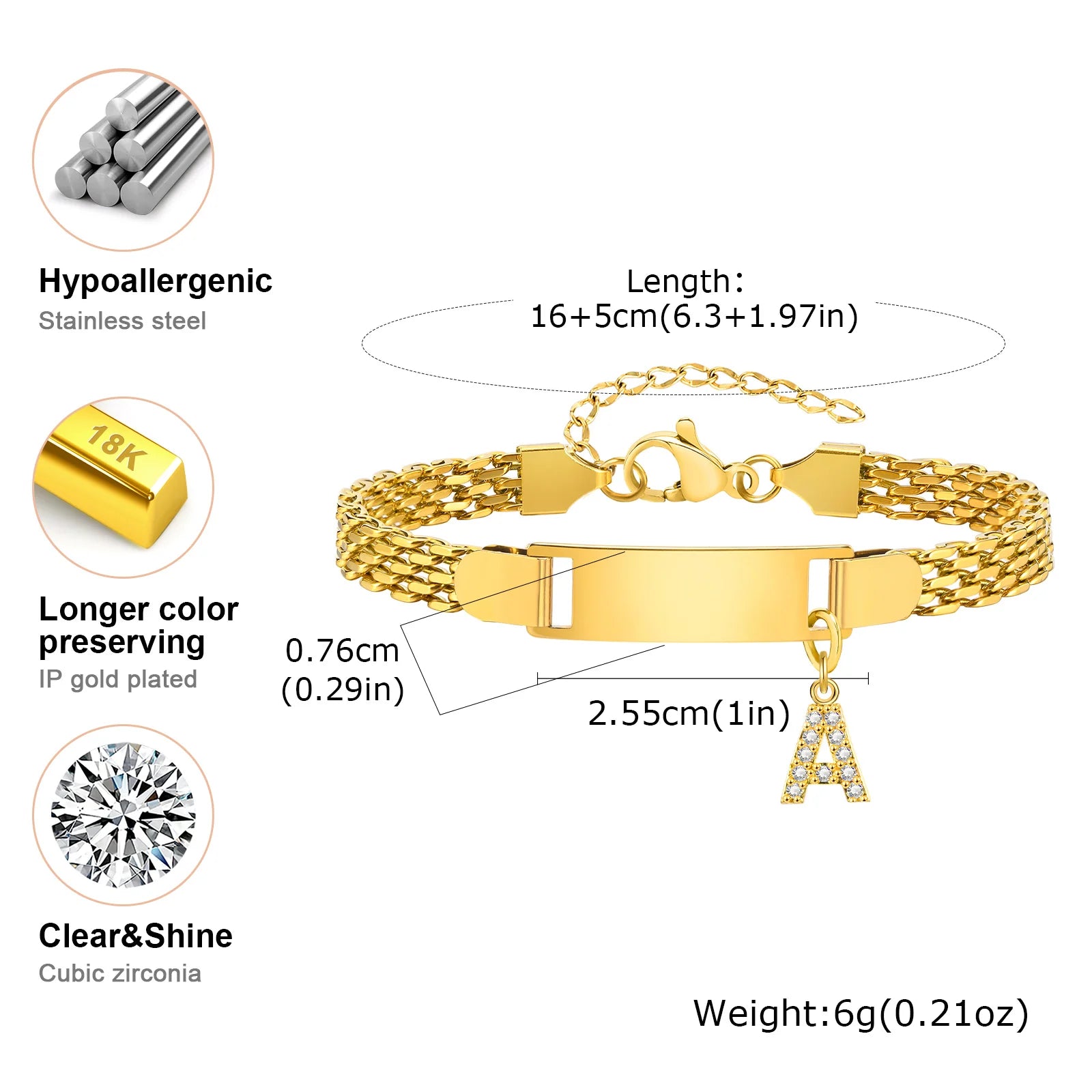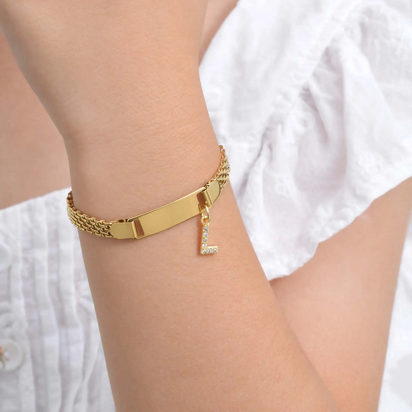 Personalized Engrave ID Name Custom Bracelet for Women Girl, Initial A-Z Letter Alphabet Pendant Stainless Steel Jewelry Gift