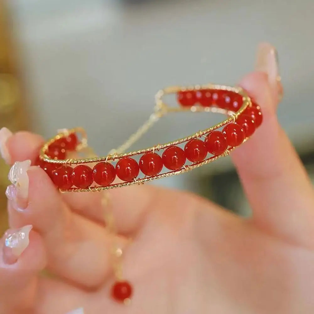 Round Jade Beaded Bracelet For Women Magnetic Bangle Butterfly Pendant Hand Chain Girls Exquisite Emerald Jewelry Birthday Gift