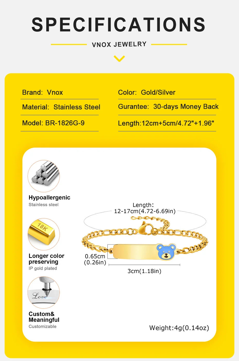 Vnox Personalized Baby Names Bracelets,Custom Baptism Gift, Anti Allergy Stainless Steel Chain Bracelets, Gifts to Newborns