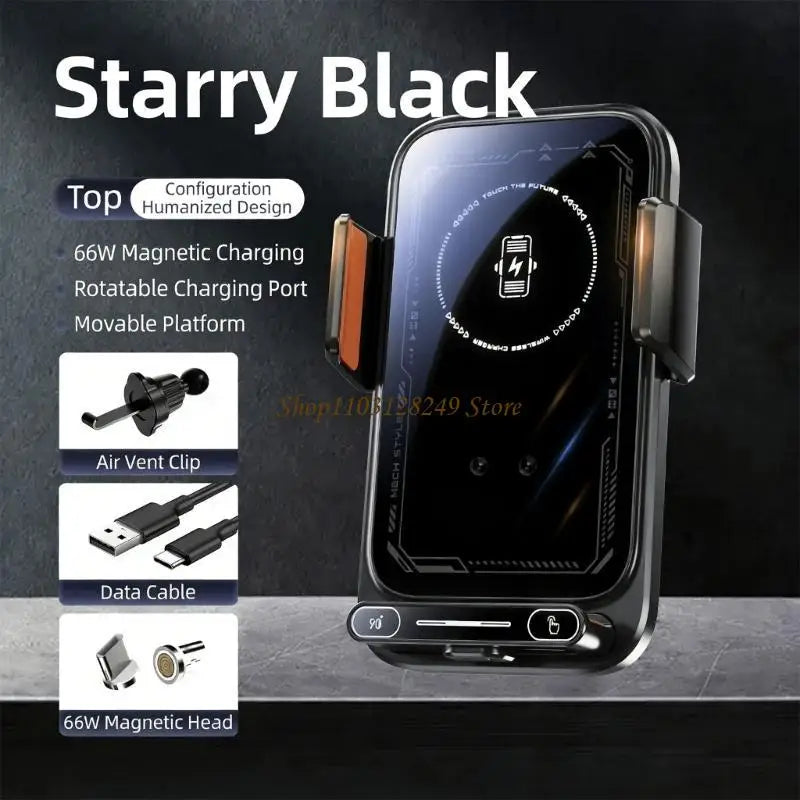 Experience seamless driving with this Sensing Car Phone Holder, featuring 15W wireless charging, automatic motorized rotation, and touch releases for instantly phone access and charging on the go.